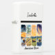 Deze witte aansteker toont vier landschapspanelen met Amerikaanse bizons in hun natuurlijke habitat van zonsondergang tot de aurora borealis. Boven de panelen wordt de tekst "[Isabella]" weergegeven boven "American Bison" .for you to personalize it with jouw naam