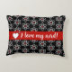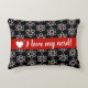 Coussin d'accent noir orné de l'image de l'atome. Bannière qui dit J'AIME MON NERD! Un cadeau cool pour l'amoureux de la science dans votre vie!