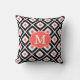 Black, Coral, White Ikat Diamond Pattern Kussen