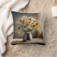 Een metalen kruik met een boeket van Black-eyed Susan en Queen Anne's Lace bloemen wordt geplaatst op een kant-overdekte tafel met zonlicht streaming door een raam versierd met kant gordijnen.