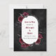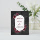 Donker en humeurig sparen de datumkaart met Till Death Do ons Part gezegde, dark red roses, vleermuizen en spinwebben. Heeft een rokerige zwarte achtergrond van de waterverf. De typografie van de schrijfmachine versterkt het gotische gevoel van de aankondiging. Bekijk ook onze coördinerende objecten.