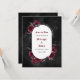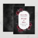 Donker en humeurig sparen de datumkaart met Till Death Do ons Part gezegde, dark red roses, vleermuizen en spinwebben. Heeft een rokerige zwarte achtergrond van de waterverf. De typografie van de schrijfmachine versterkt het gotische gevoel van de aankondiging. Bekijk ook onze coördinerende objecten.