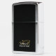Personalized elegant refined manly masculine wind proof premium look lighter, personalizable customizable with monogram, initial letters and name. Black classy timeless background, elegant gold calligraphy script handwritten initial letters, and stylish white serif typography for the name. Monochrome, minimalist, simple, monogrammed, unique. It can make a thoughtful custom gift under 50 dollars for him. Suitable for a gentleman on many occasions and celebrations, like birthday, Father’s Day, Christmas, graduation, anniversaries, retirement present, or favors gift for groomsmen, best man.