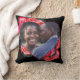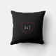 Personnalisez cette rose noire et rouge Valentine's Day jetez l'oreiller avec votre photo et message. coussin pouf carré avec grand cadre photo rose en forme de coeur a un arrière - plan noir à l'avant et à l'arrière, avec vos initiales à l'arrière du coussin. Votre photo peut être rognée et positionnée pour s'adapter en forme de coeur. Mais les calques peuvent avoir besoin d'être désactivés temporairement pour se déplacer autour de votre photo.