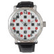Black Squares Red Polka Dots Pattern White BG Horloge