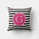 Black Striped Pattern Hot Pink Monogram Kussen