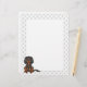 Destei's originele cartoon illustratie van een schattige zwarte en beige kleur Cavalier King Charles Spaniel die zit. Het midden is wit terwijl de grenzen een patroon van grijze pootdrukken hebben.