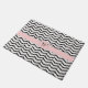 De klassieke combinatie van zwart en wit is geaccentueerd met lagen van wazige roze in dit trendy en klastige chevron patroon met lagen van verschillende dikten om dingen op te splitsen. Pas het monogram op dit portret aan om een gepersonaliseerde decoratie te creëer voor uw ingang.