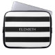 Black White Horiz Preppy Stripe #2 Naam Monogram Laptop Sleeve