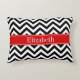 Black White LG Chevron Red Name Monogram Decoratief Kussen
