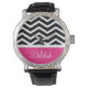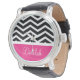 Black White Pink Chevron Custom Horloge