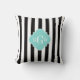 Black White Stripe Turquoise Quatrefoil 3 Monogram Kussen