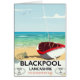 Blackpool, lancashire, Engeland, poster van een oude roeiboot of vissersboot op het zandstrand.