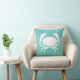 partie de la décoration sur le thème de l'océan CRAB WHITE sur coussin bleu turquoise d'un côté et rayures turquoises et blanches de l'arrière. Conception par Sandy Closs