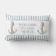 Dit prachtige kust geïnspireerde kussen beschikt over nautische ankers met touw in zachte tinten van blauw en bruin op bijpassende blauw-witte strepen. Personaliseer met uw keuze van speciale tekst.