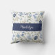 Blauw Aquarel Wilde Bloem Monogram Naam Kussen