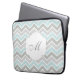 Blauw en grijs Zigzag Chevron Monogram Laptop Sleeve