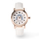 Een horloge met een leuke en grillige regenboog. Blauwe en perzik waterverven.