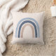 Kussen met een leuke en grillige regenboog. Blauwe en perzik waterverven.
