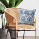 Blauw en wit Bloemen Damast Spaans Tegel Kussen