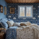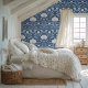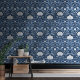 Blauw en wit folk art patroon behang