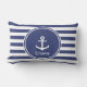 Blauw en wit gestreept met ankernaam en aangepaste kussen