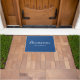 Elegant blauw en wit Frans welkomstmat. U kunt het gemakkelijk aanpassen met uw familienaam. Merk op dat je in het Frans "Chez les Robinson" zegt en niet "Chez les Robinsons", wat betekent "Bij de Robinson thuis". Het is correct in het Frans om aan het eind geen "s" toe te voegen. U kunt ook gewoon schrijven "Chez Robinson" of "Famille Robinson" als u wilt. De blauwe achtergrondkleur is aanpasbaar.
