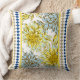 Blauw Gele Dahlia's met Patterned Trim Kussen
