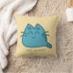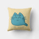 een schattige cartoon tekening van een blauwende kitty kat. Wees gelukkig, onderaan geschreven.