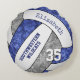 Dit leuke volleybalteam kleuren het kussen voor meisjes met een aangepast team en mascot naam op school kenmerkt het realistische gestileerde afbeelding van een blauw, grijs en wit volleybal met een artsy floral kaleidoscopisch patroon dat wordt vermengd met de blauwe en grijze panelen - haar naam en teamnaam zijn aanpasbaar, net als haar nummer - door katz_d_zynes