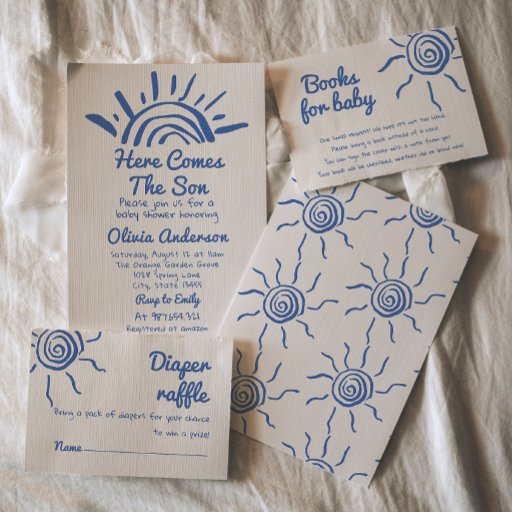 Blue Hand Drawn Here Comes The Sun Baby ShowerOntworpen door marouane boukouyen