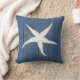 Op de achtergrond van oude houtplanken in kobaltblauw wordt een oud beeld van een zeester in crème en wit geplaatst om dit prachtige strand te maken met de thema's gooiend kussen. Overeenkomende objecten en andere design met een strandthema zijn beschikbaar in mijn Zazzle-winkel.