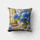 Blauw hortensia bloemenboeket in een ouderwetse kruik op een kant in Monet stijl