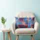 Kussen met een modern abstract quilt of patchwork patroonontwerp in rood wit en blauw met een spijkerbroek. Het patroon kan ook worden geroteerd of geschaald.