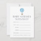 Laat de gasten van het baby shower hun beste gistijnen nemen op de geboortedatum en -tijd, het gewicht en de lengte van de baby. Plaats een stapel bij de ingang aan de gebeurtenis, ga hen rond, of verlaat bij elke plaats het plaatsen. Maakt ook een leuk hoepenbelang voor de moeder-te-zijn, wanneer gecompileerd in een doos of een multomap. Het ontwerp is voorzien van een blauwe en aqua waterverf heteluchtballon bovenaan met moderne letters en een subtiel gestippeld diamantpatroon aan de achterzijde.