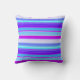Blauw paarse gestreepte gooi kussen. Artistiek creatief gestreepte kussens voor huisdecoratie. Blauwe violette kleurtonen strepen eclectische huisdecoratie kussen. Helder kleurrijk blauw paarse gestreepte kussen. Unieke originele blauw paarse strepen home decor.