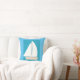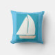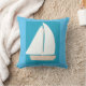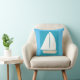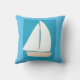 Dit blauwe werpkussen is ontworpen met mijn afbeelding van een witte zeilboot op een turquoise en blauwe achtergrond.
