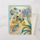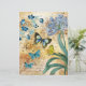 blauwe vlinders met bloemen, bladeren en flesjes met een achtergrond van het grijze ephemerscript.