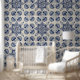 Handgeschilderde traditionele tegels uit Spanje, Italië en Portugal. Patroon van perfectie. Geometrisch mozaïek blauw en wit bloem tegel artwork. Het perfecte decoratieve ontwerp, ideaal cadeau voor elke gelegenheid.