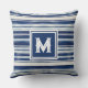 Blauw-wit gestreept monogram kussen