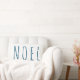Blauw Wit Sierkussen met kerstmis maakt een geweldig vakantiehuisdeeg voor de trendy blauwe kerst. Witte lumbale kussen met "noel" in blauw aan de voorzijde. Voeg toe aan een stoel of bank boven op je decor.