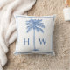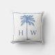 Dit op de kust geïnspireerde monografische kussen is voorzien van een klassieke palmettoboom in blauw op een witte achtergrond met een monogram dat u kunt personaliseren met uw keuze aan initialen.