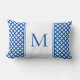 Dit prachtige kussen heeft een klassiek blauw-wit trellispatroon met een bijpassend blauw-wit monogram dat u kunt personaliseren met uw keuze aan initiaal.