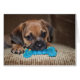 Een puppy die van zijn nieuwe speelgoed geniet