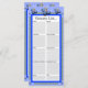 De lijst van de kruidenierswaren met een thema van de bosbessen. Past de andere bosbesproducten in deze opslag aan. De ene kant heeft een plek om een overzicht te geven van je kruideniersbehoeften van bepaalde producten, en de andere kant heeft een plek voor de rest van je producten en heeft een extra ruimte onder allerlei soorten. Heeft een blauwe doos rond de "lijst"en verlaat het aangrenzende, en kleine clusters van bosbessen in elke hoek. Heeft een blauwe kleine ingecheckte achtergrond. Een cluster van bosbessen en 2 kleinere clusters staan bovenaan. Maakt een handige maat om mee te nemen.