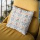 Boho en rustiek kussen met handgetekende illustratie van bogen en bloemen in blauwe kleuren.