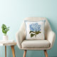 blauwhydrangea Pillow in verschillende stijlen/maten/weefsels. Zeer botanisch afbeelding van een grote hydrangeenbloem in tinten blauw, groen en wit. De rug van de kussen is stevig middelblauw om de grens van het afbeelding op de voorzijde aan te passen.