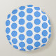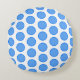 Een minimalistisch blauw cirkelpatroon en witte achtergrond.