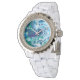 Blauwe en groene digitale marmer-fluid-kunst horloge