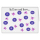 Een schattige briefkaart met een paarse schaduwachtergrond met kleine koninklijke blauwe knoppen en roze bogen. Pas aan zoals gewenst.